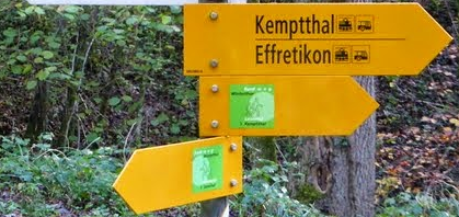 The route mostly follows the official «Rundweg Winterthur» hiking trail. Hiking trails in Switzerland are marked with yellow-orange signposts and diamonds of the same colour on trees.